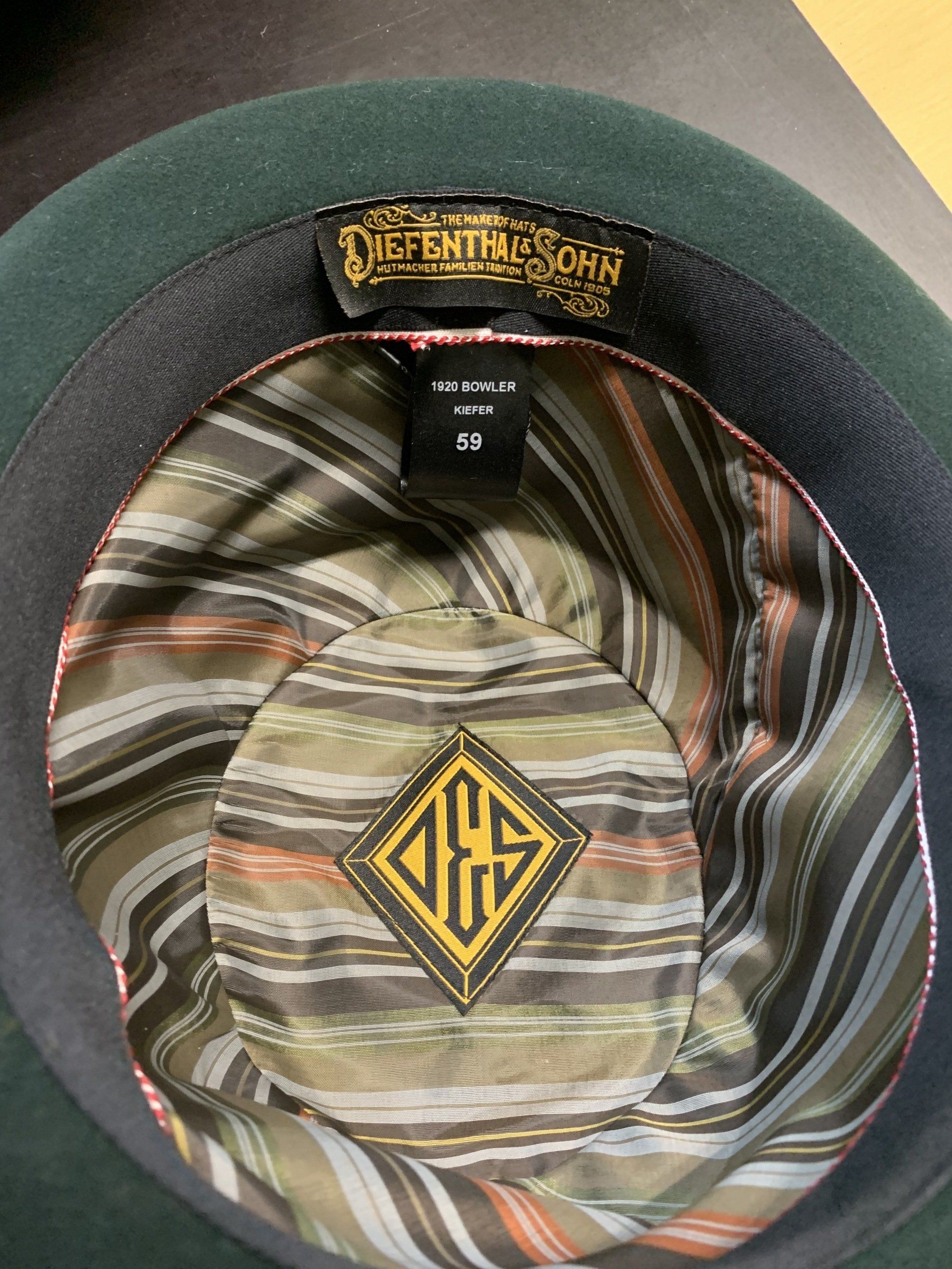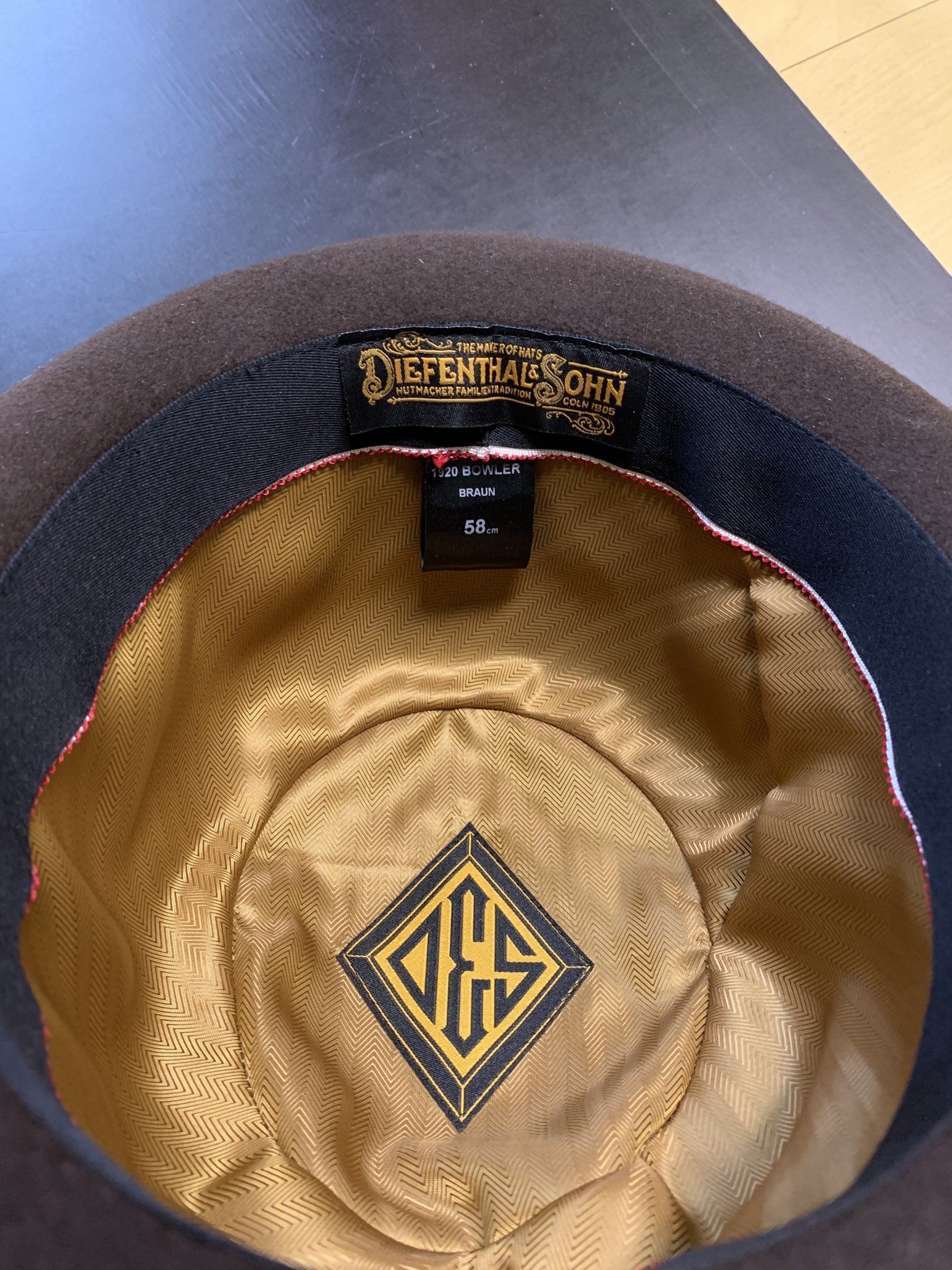 Außen befindet sich unser in Metall gegossenes Diefenthal & Sohn Emblem.
