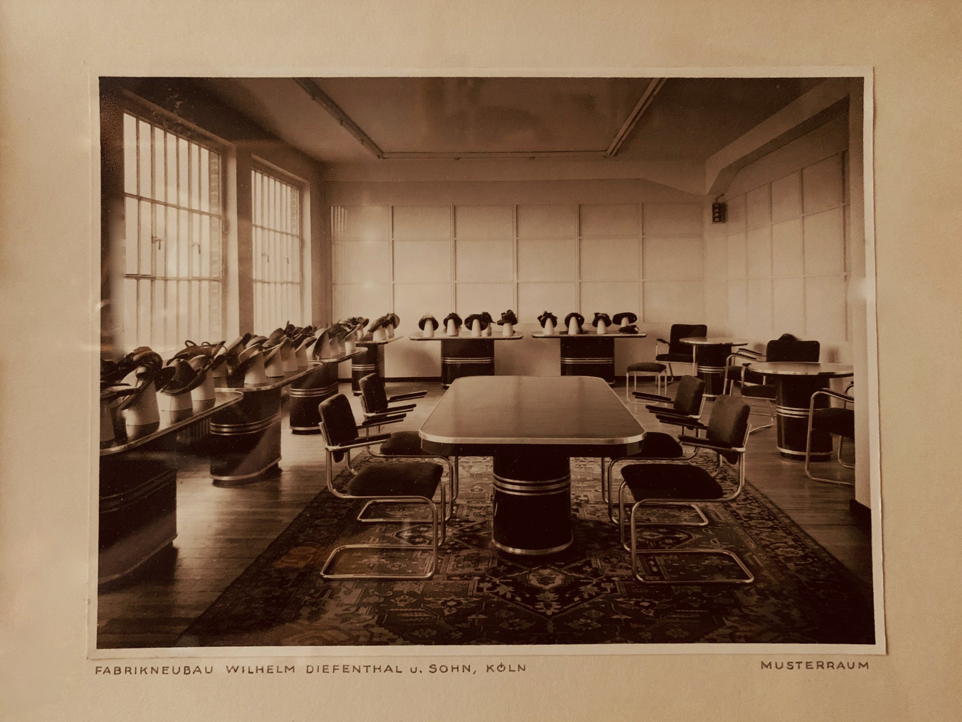 Inspiriert durch die originalen alten Stahltische der Firma Mauser, Tische aus dem ehemaligen Musterraum des Großvaters, welche glücklicherweise erhalten geblieben sind, hat Thomas Rüttgers einen Laden geschaffen, der den Art déco der 20er Jahre feiert.